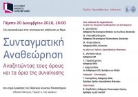 Επιστημονική εκδήλωση του Ομίλου «Αριστόβουλος Μάνεσης» και του Ελληνικού Ανοιχτού Πανεπιστημίου ΣΥΝΤΑΓΜΑΤΙΚΗ ΑΝΑΘΕΩΡΗΣΗ: ΑΝΑΖΗΤΩΝΤΑΣ ΤΟΥΣ ΟΡΟΥΣ ΚΑΙ ΤΑ ΟΡΙΑ ΤΗΣ ΣΥΝΑΙΝΕΣΗΣ