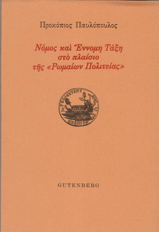 Κυκλοφόρησε, από τις εκδόσεις «Gutenberg» (2025), στα ελληνικά και στα αγγλικά η νέα μελέτη του πρώην Προέδρου της Δημοκρατίας, Ακαδημαϊκού και Επίτιμου Καθηγητή της Νομικής Σχολής του Πανεπιστημίου Αθηνών κ. Προκοπίου Παυλοπούλου με τίτλο: «Νόμος και Έννομη Τάξη στο πλαίσιο της “Ρωμαίων Πολιτείας”» (και «Law and Legal Order in Ancient Rome») (σελ. 152). Η μελέτη αυτή ολοκληρώνει εκείνη του 2023, που εκδόθηκε και πάλι από τον οίκο Gutenberg, με τίτλο: «Θεσμικά “κληροδοτήματα” της ρωμαϊκής “Res Publica” στην σύγχρονη Αντιπροσωπευτική Δημοκρατία».